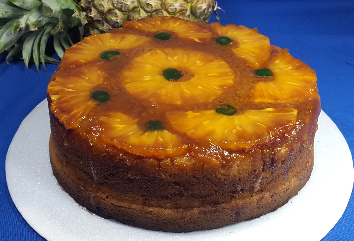 Prueba nuestro original Volteado de Piña, deliciosa base sabor natural con relleno de merlada de piña hecha en casa.